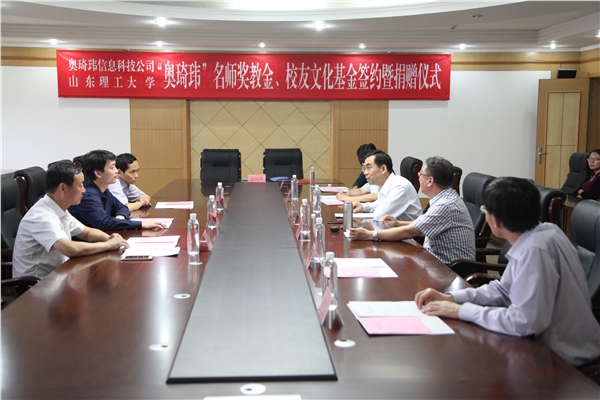 5月25日下午,奥琦玮信息科技北京有限公司向我校捐资设立“奥琦玮”名师奖教金、校友文化基金仪式在我校举行,我校校长吕传毅、副校长胡兴禹,奥琦玮公司董事长、总经理,我校校友孔令博出席仪式,校党委副书记张宇声主持仪式,相关部门、学院负责人参加仪式。